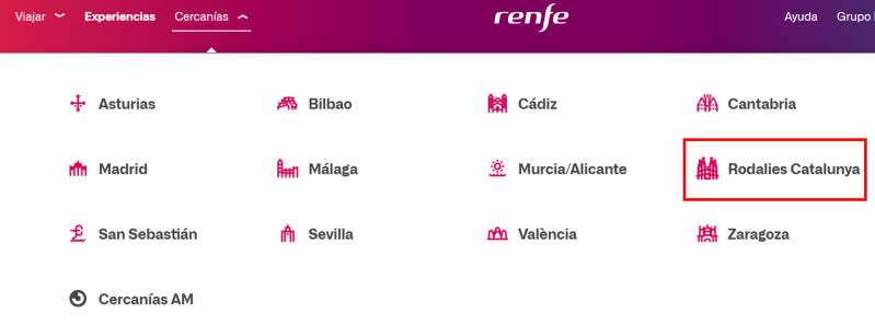 Al entrar en la web de RENFE, deberás ir a "Rodalies Catalunya"