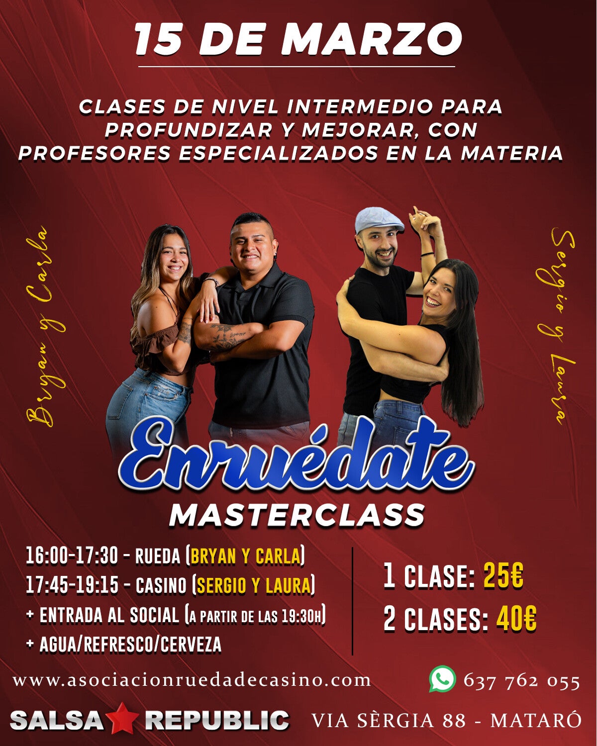 Después de las clases, podremos disfrutar de la sesión de la sala SALSA REPUBLIC.